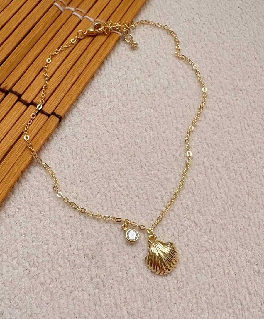 Tipo: Tornozeleira de praia pingentes concha shell e ponto de luz